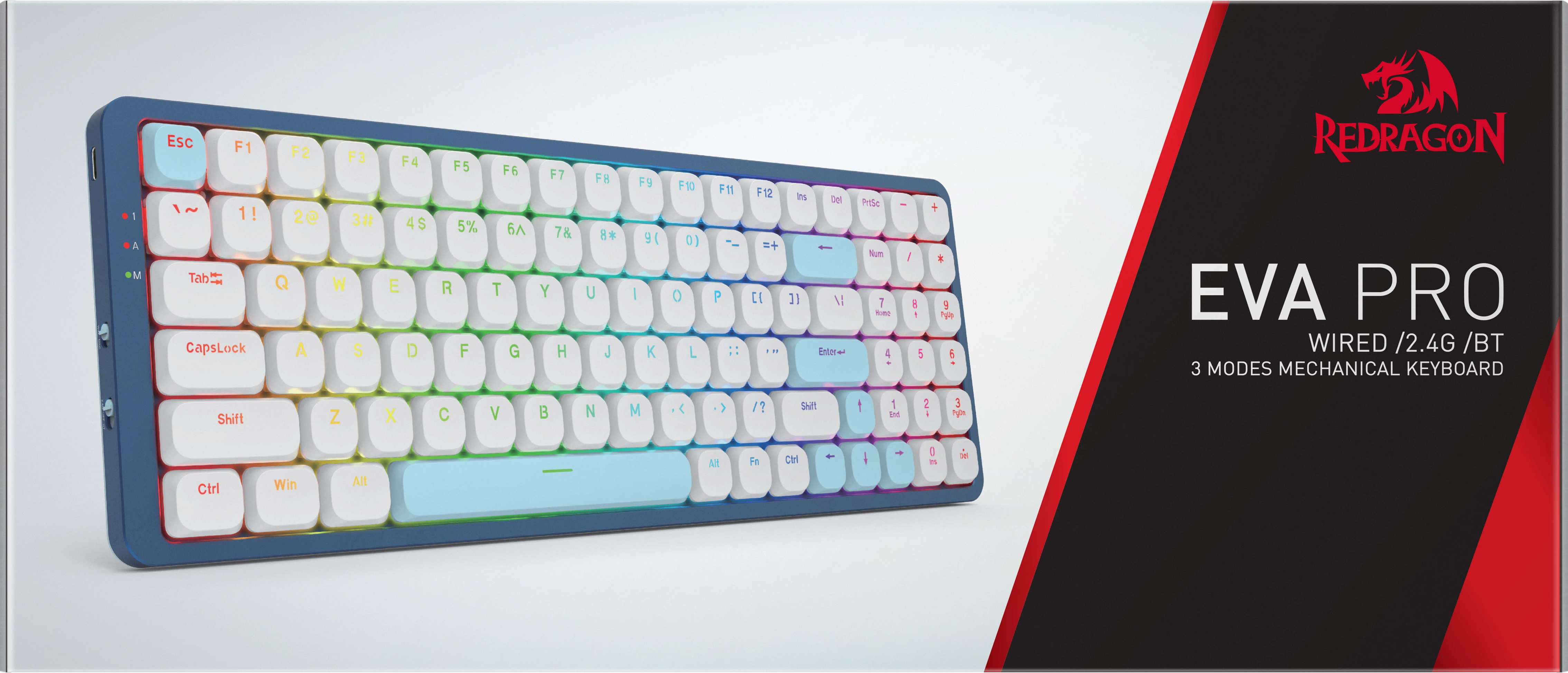 Eva Pro — элегантная низкопрофильная клавиатура, созданная для тех, кто ценит минимализм и технологии. Подключение по 2.4 ГГц, Bluetooth или проводу — свобода выбора. RGB-подсветка добавляет характер, а переключатель между Windows и Mac делает работу с разными устройствами проще.
